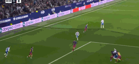 直到第86分钟,比赛的僵局才被打破。彼时,巴萨中路策动进攻,费尔明推进后横传,奥尔莫不停球直接起脚打门,足球直奔球门上角,西班牙人门将德米特洛维奇无能为力,巴塞罗那首开纪录。