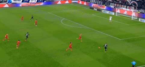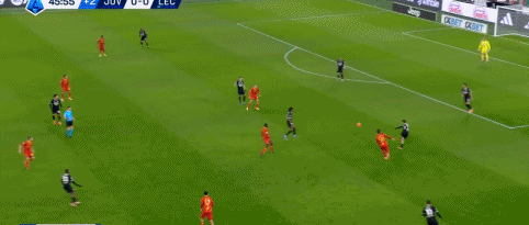 上半场,补时阶段,尤文后场横传出现失误,邦达跟进断球得手,随后在禁区左侧内切摆脱后抽射破门,帮助莱切反客为主,首开纪录。