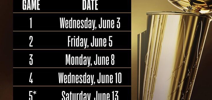 本赛季总决赛日程安排:G1将在6月4日开打 最迟6月20日结束